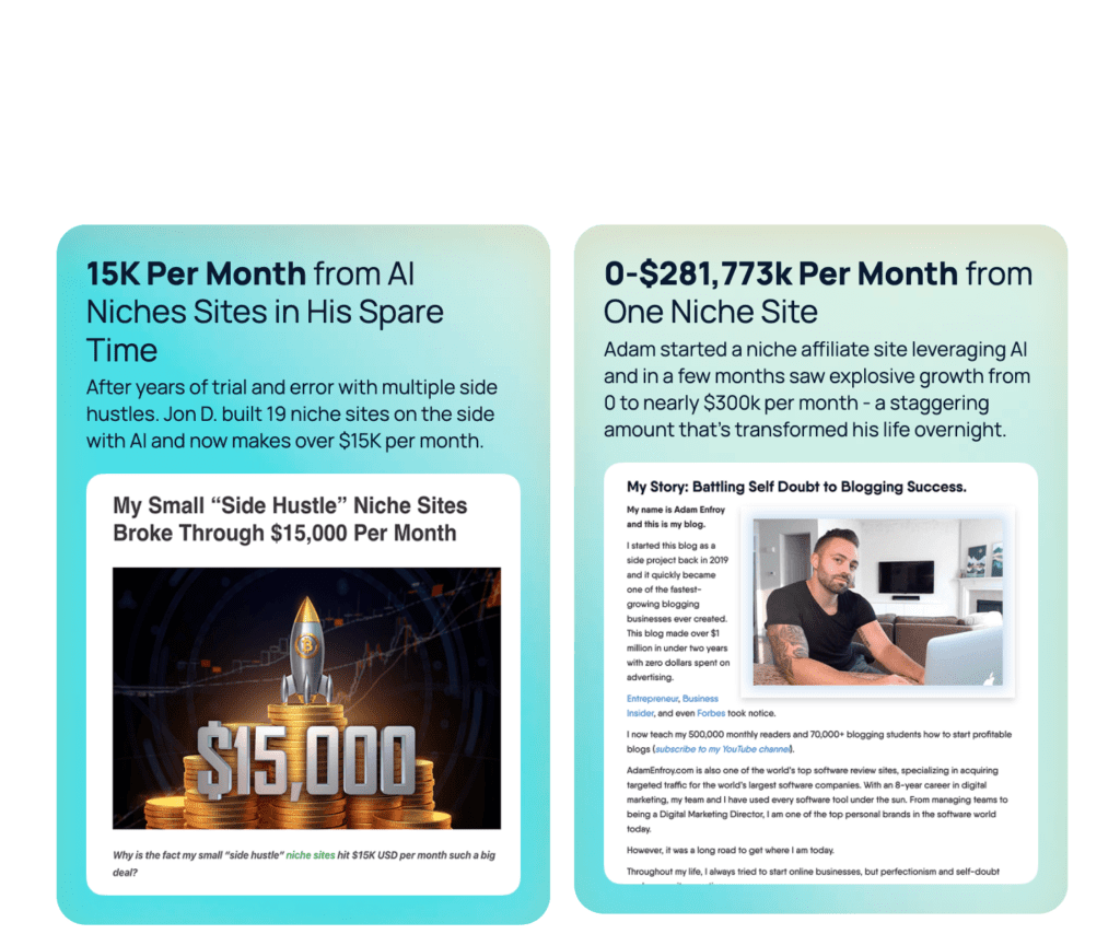 A: The platform handles on-page SEO automatically. You just need to understand niche selection and basic keyword research (which you can learn in 2-3 hours).