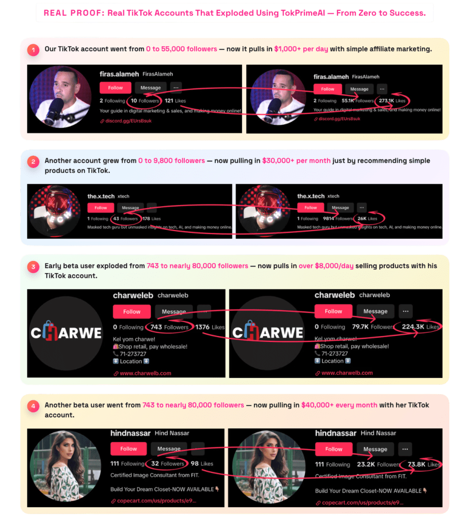 Quote: “I was terrified to show my face. TokPrime AI let me build a 6-figure business in 30 days without appearing once.”