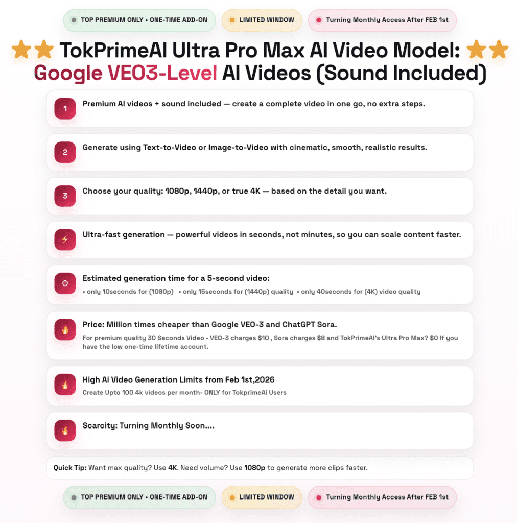 This comprehensive review reveals how TokPrime AI enables everyday creators, entrepreneurs, and digital marketers to generate unlimited viral-ready TikTok content while maintaining complete anonymity, scaling passive income streams to $5,000+ monthly, and competing directly with full-time content creators—all without ever appearing on camera.